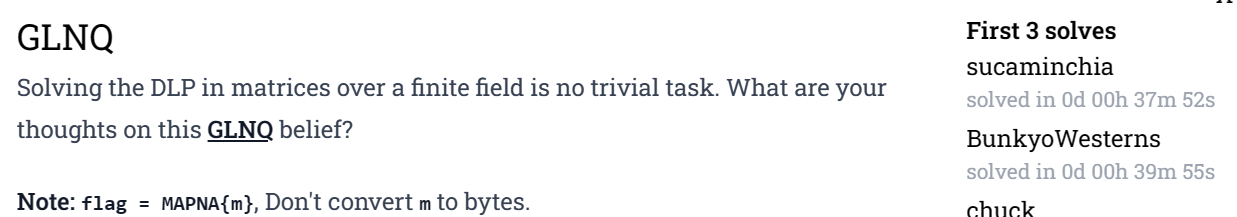 I solved 5 crypto challs [Shibs, GLNQ, Be Fast, What next?, What next Ⅱ?] and I got 3 first blood, 1 second blood, 1 third blood.